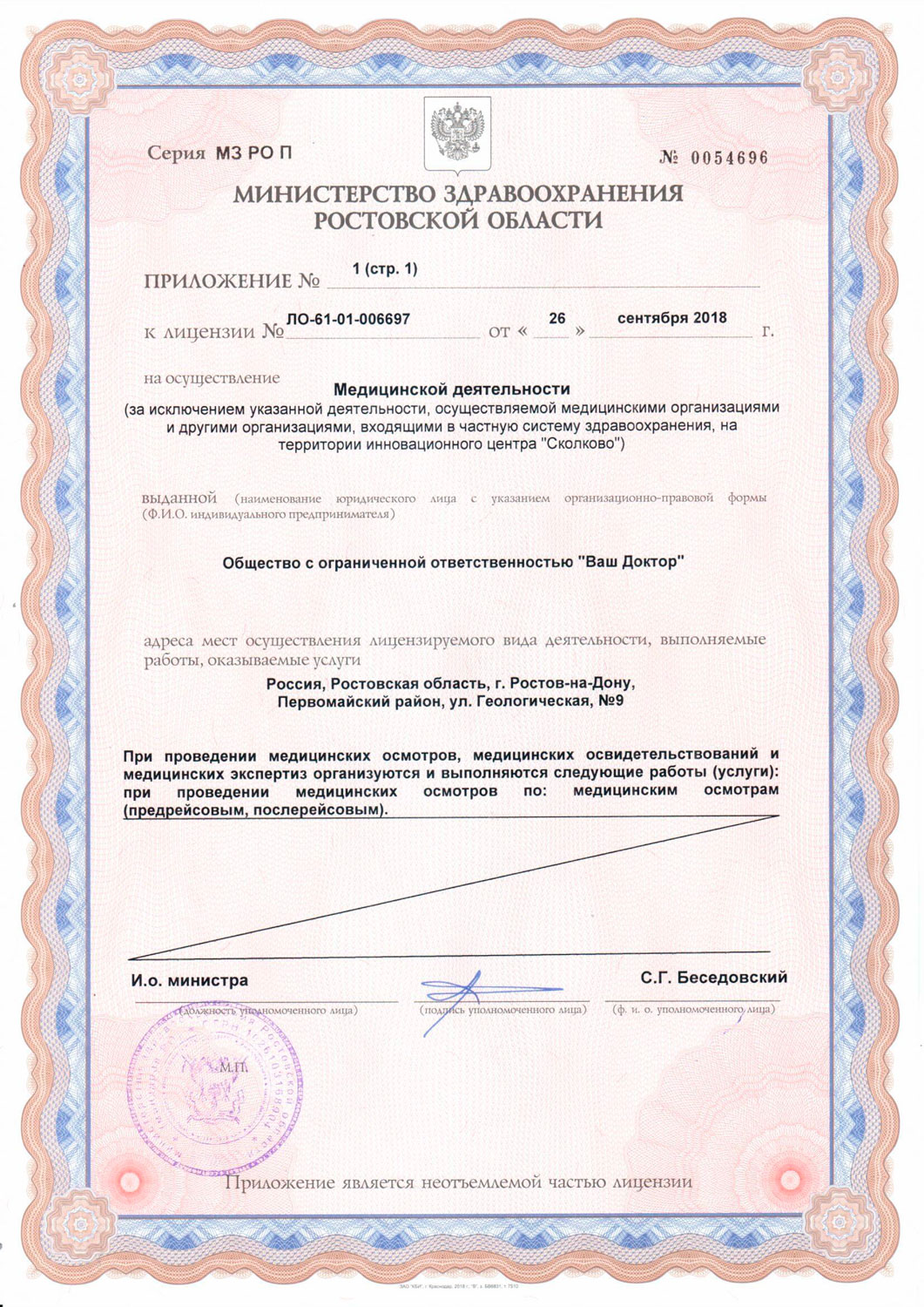 Медицинский центр «Ваш Доктор» на проспекте Маршала Жукова г. Ростова-на-Дону – это современный, оборудованный по последнему слову техники медицинский центр. Это прекрасная альтернатива обычной муниципальной поликлинике. Здесь без утомительного ожидания в очередях вы сможете пройти обследования и сдать анализы, вас примут и осмотрят лучшие специалисты в своей области. Также на территории медицинского центра можно пройти профосмотр и получить все необходимые справки и консультацию. Пациентов с радостью встретит приветливый персонал поликлиники и ответит на все интересующие вопросы. Наши специалисты – настоящие профессионалы своего дела, которые сформируют точную модель диагностического поиска, сумеют выбрать верную тактику лечения. Если у вас нет возможности посетить наш медицинский центр, то врач может приехать к вам на дом и провести обследование или необходимые процедуры.